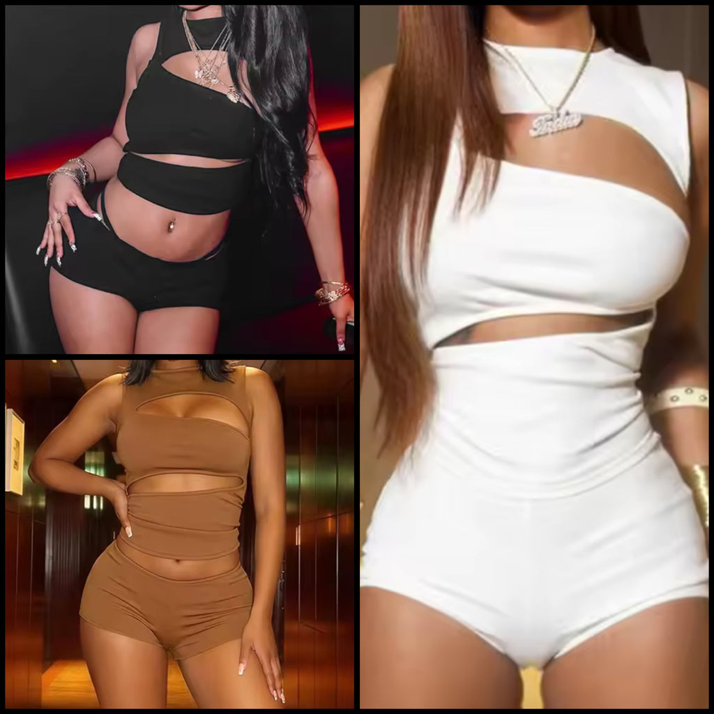 Women Sexy Sleeveless Cut Out Two Piece Short Set