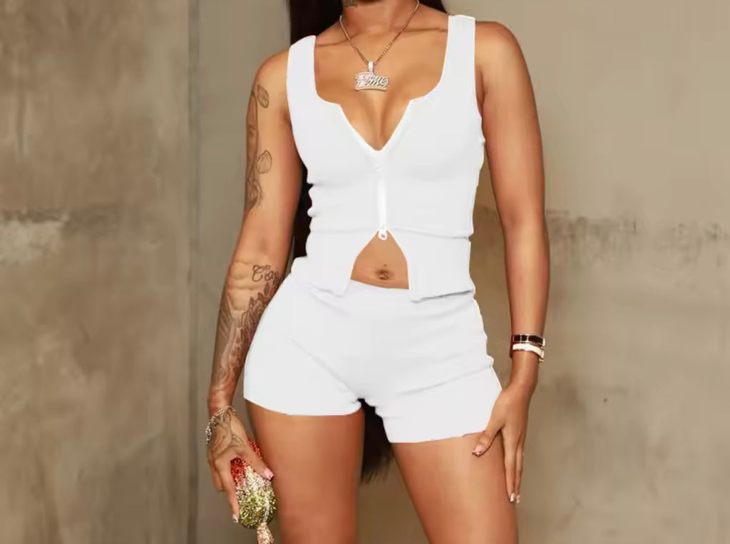 Women Fashion Two Piece Sexy Crop Top Short Set