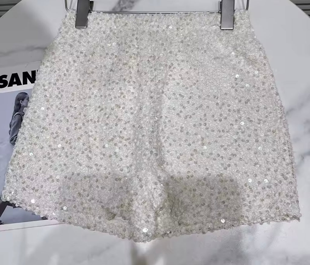 Women Fashion Full Sleeve Sequins Three Piece Short Set