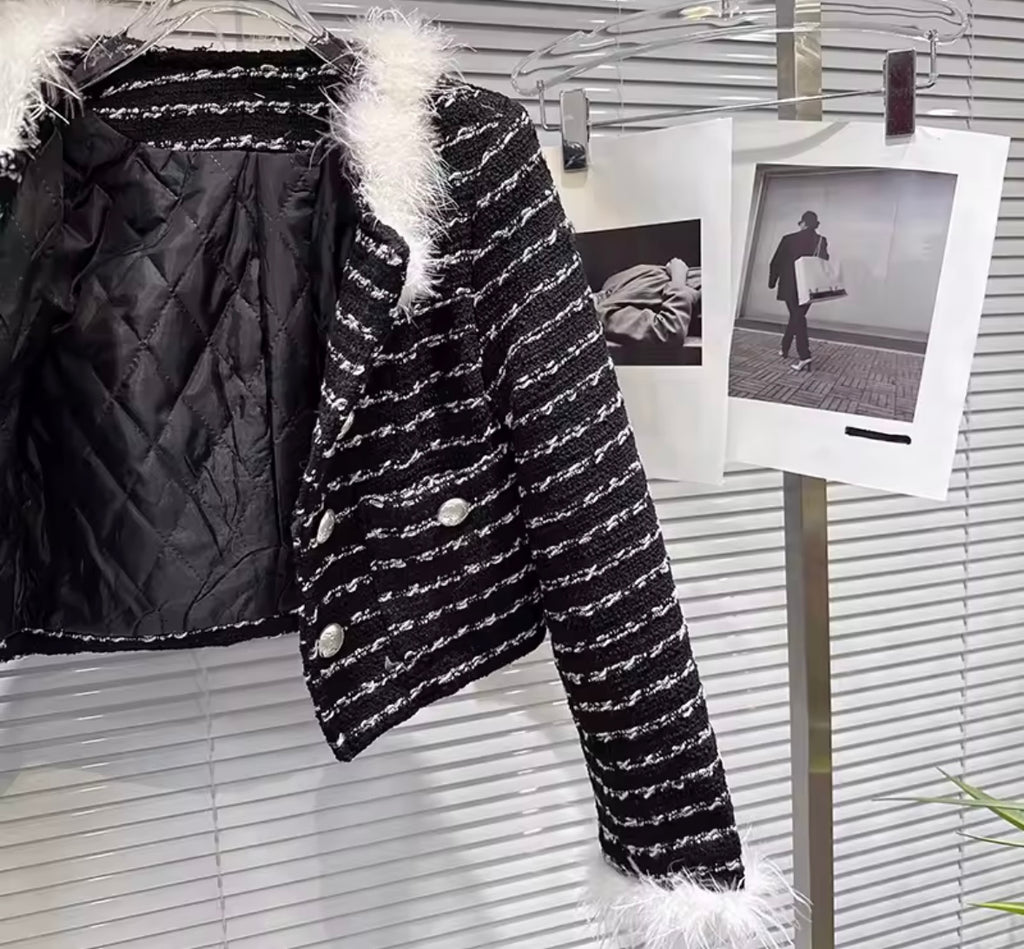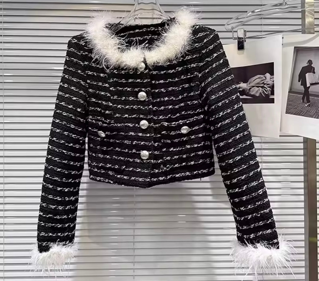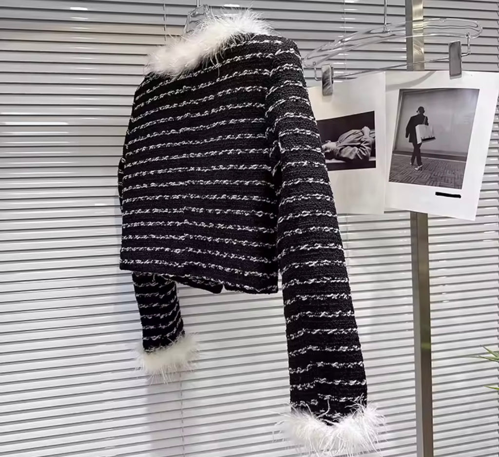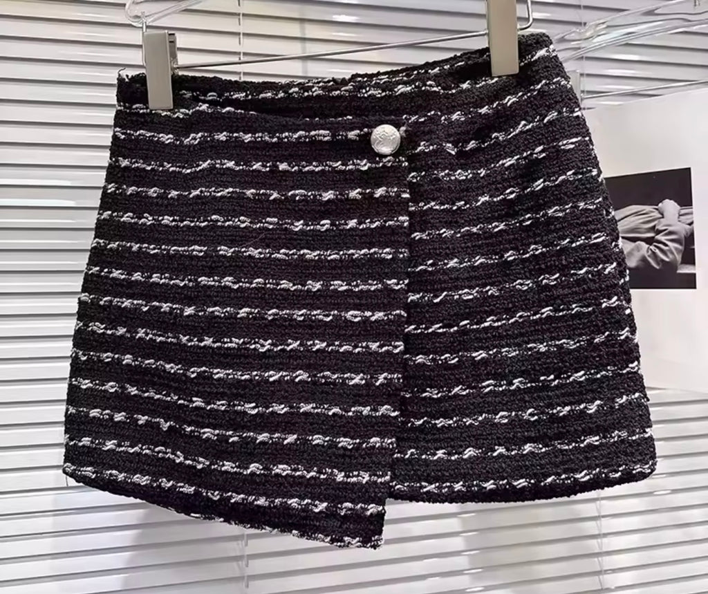 Women Fashion White/Black Full Sleeve Blazer Two Piece Skirt Set