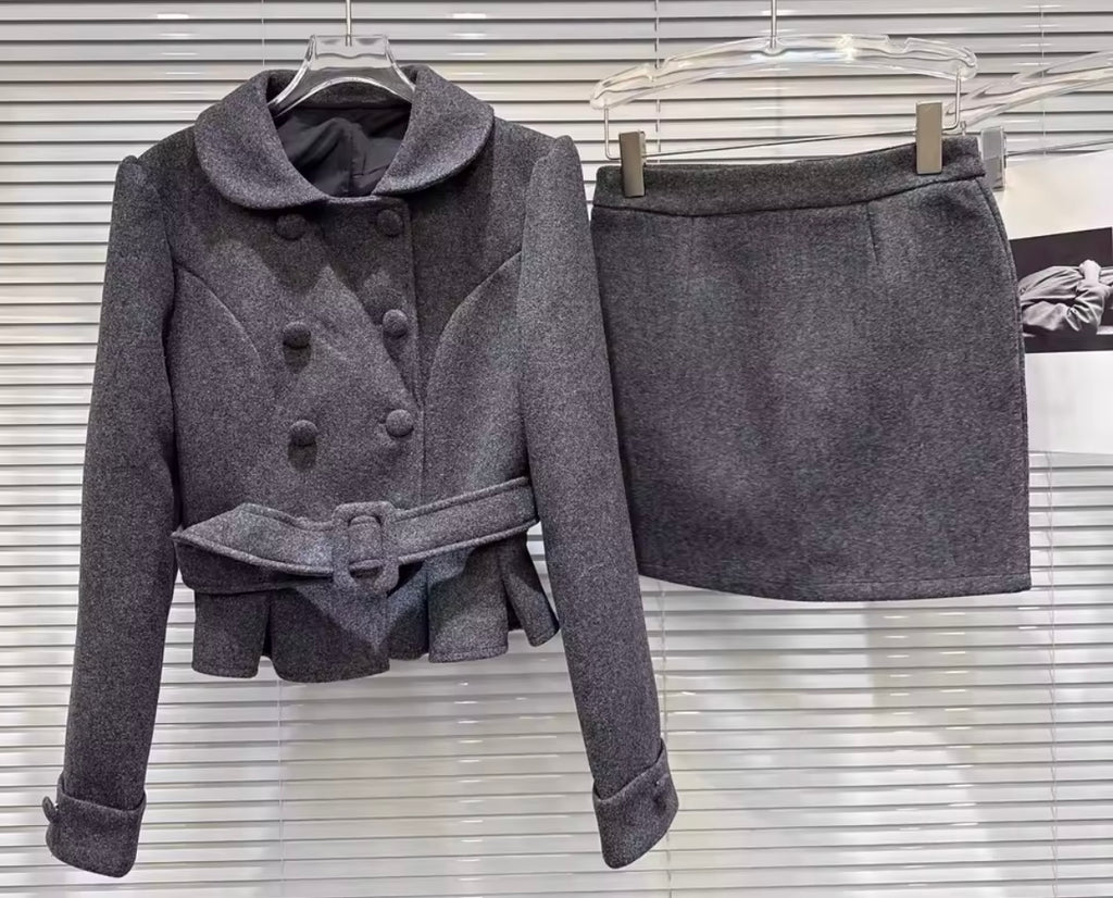 Women Quilted Fashion Hooded Jacket Two Piece Skirt Set