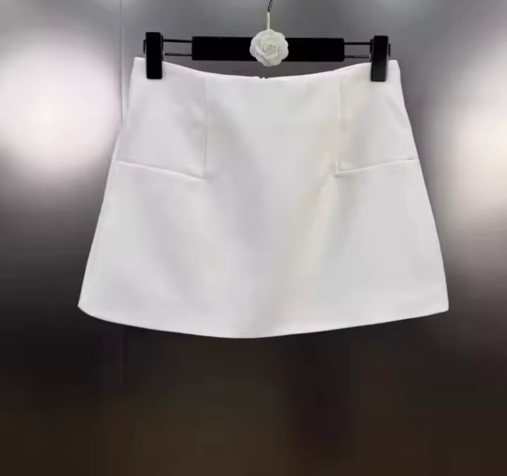 Women Sexy White Ruffled Full Sleeve Crop Two Piece Skirt Set
