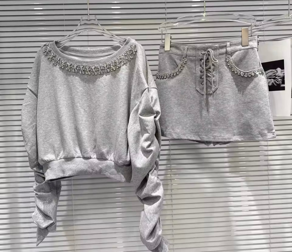 Women Quilted Fashion Hooded Jacket Two Piece Skirt Set