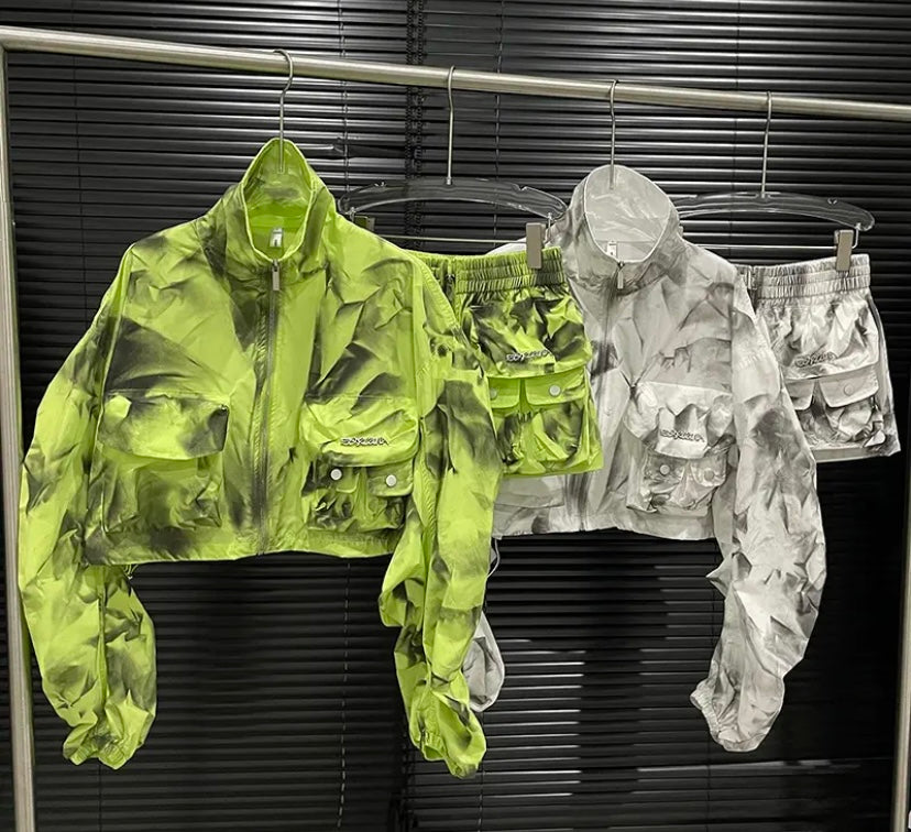 Women Khaki Fashion Trench Jacket Two Piece Ruffled Skirt Set