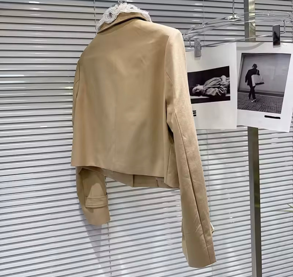 Women Khaki Fashion Trench Jacket Two Piece Ruffled Skirt Set