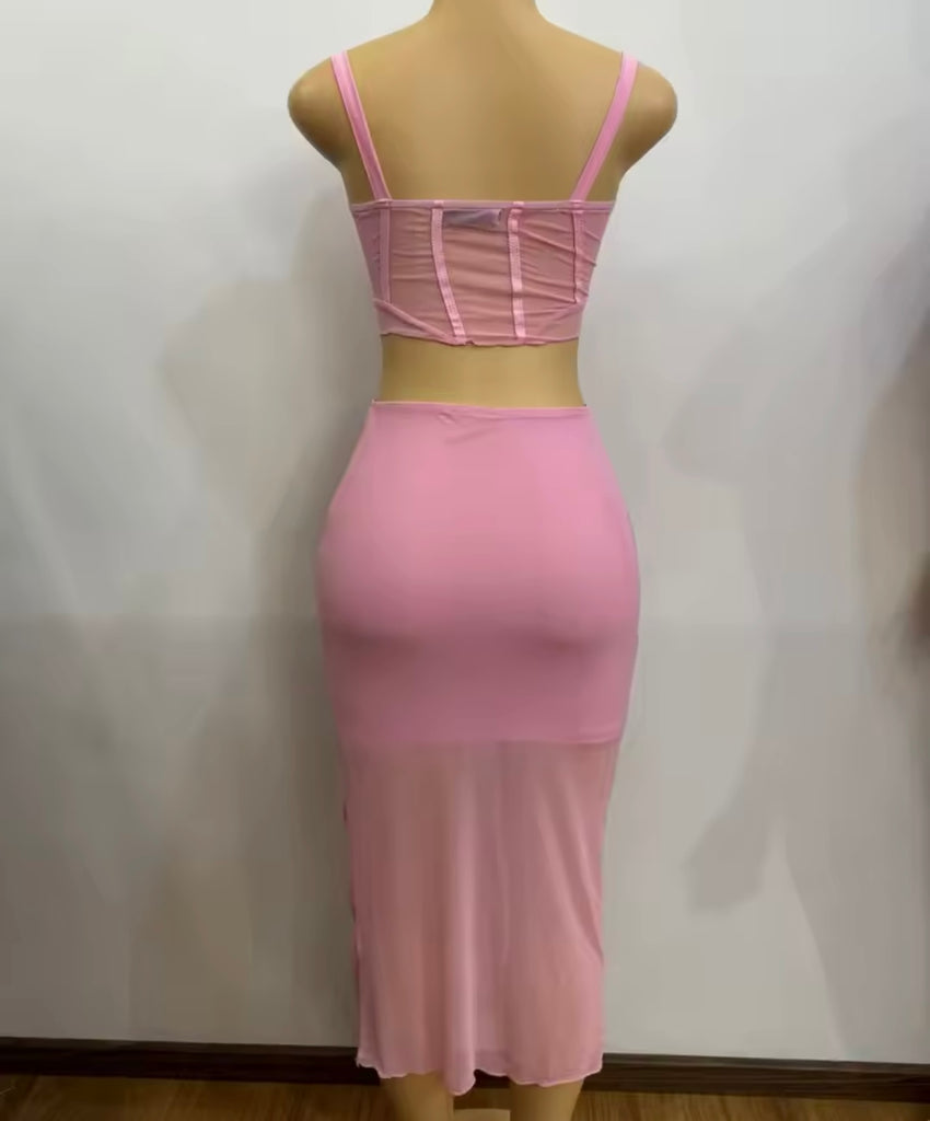 Women Sexy Black Lace Strapless Ribbon Two Piece Skirt Set
