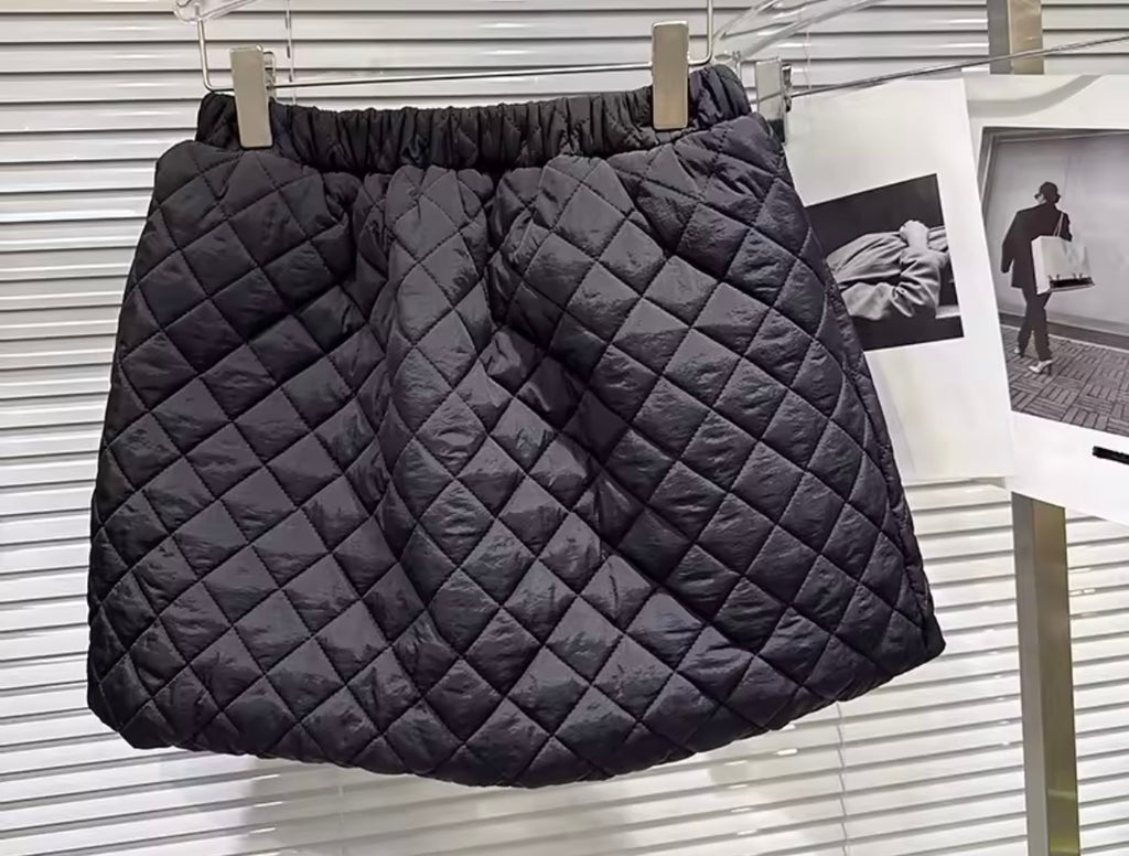 Women Quilted Fashion Hooded Jacket Two Piece Skirt Set