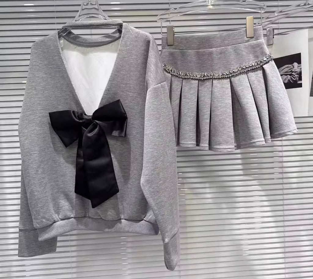 Women Beaded Plaid Patchwork Suede Jacket Two Piece Skirt Set