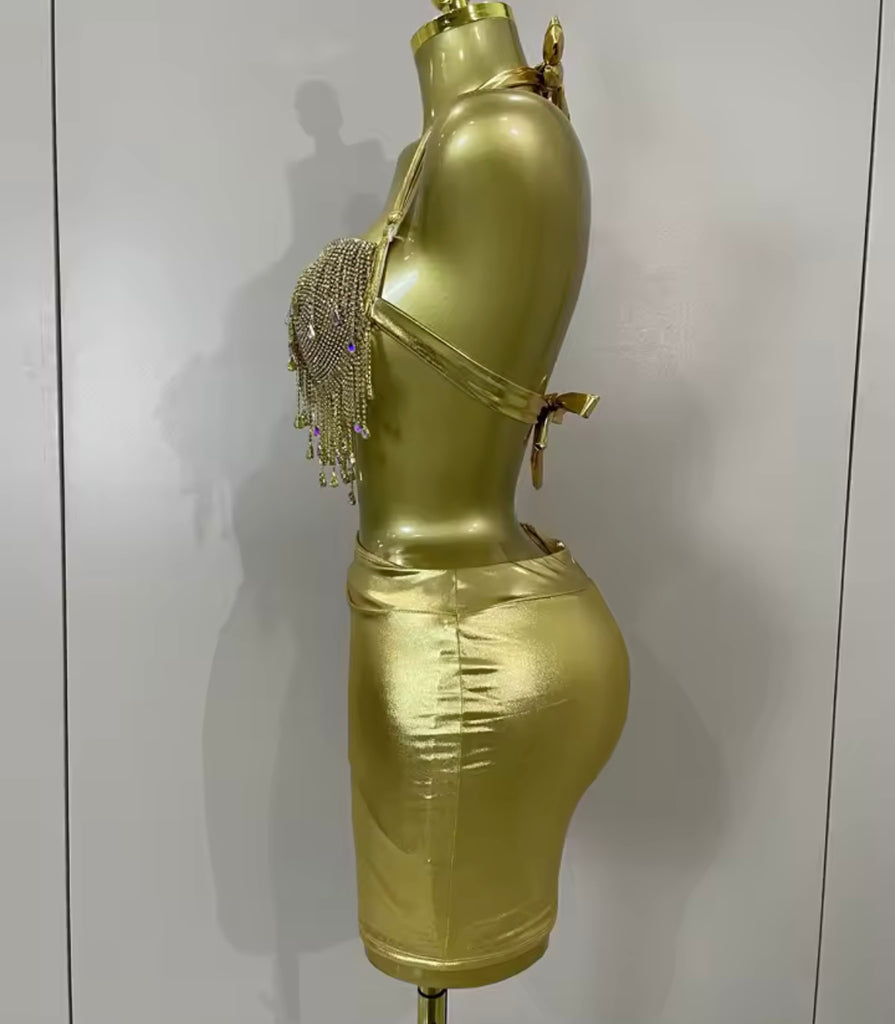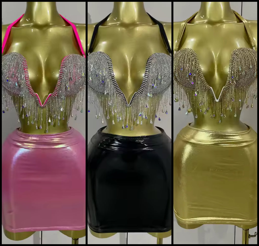 Women Sexy Black Lace Strapless Ribbon Two Piece Skirt Set