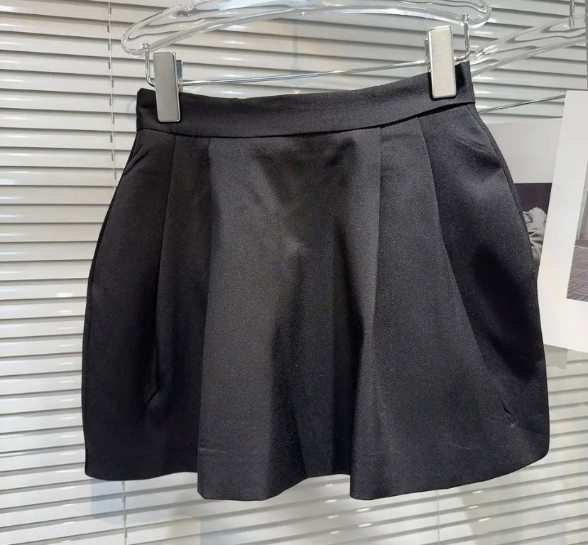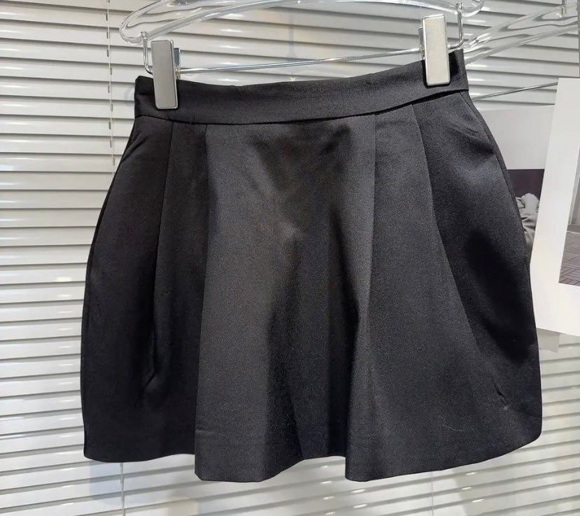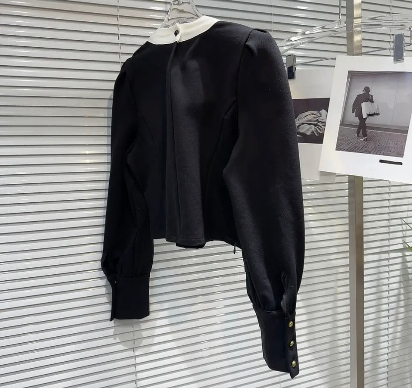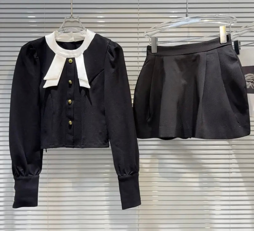 Women Sexy B&W Bow Button Up Full Sleeve Two Piece Skirt Set