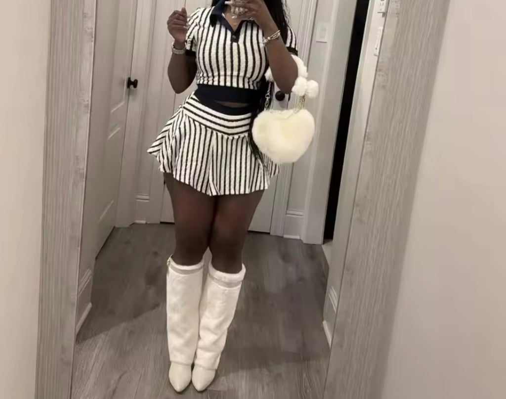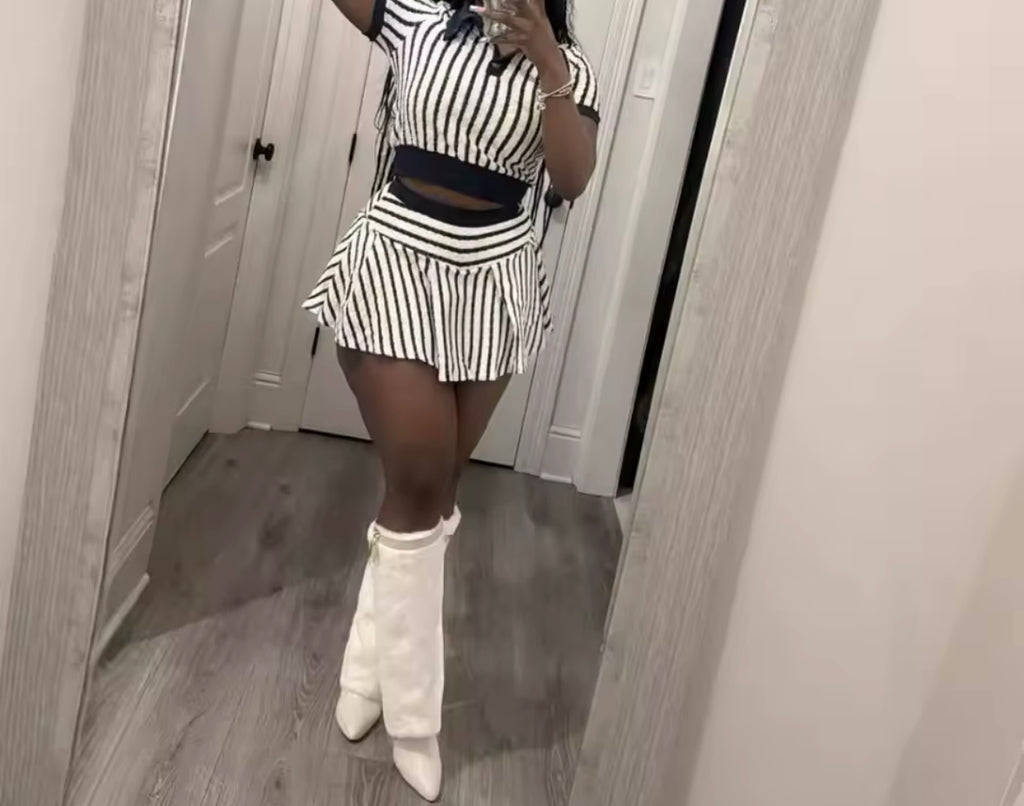 Women Ruffled Bow Tie Full Sleeve Two Piece Bling Skirt Set