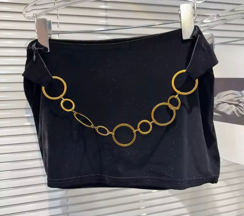 Women Sexy Black Lace Strapless Ribbon Two Piece Skirt Set
