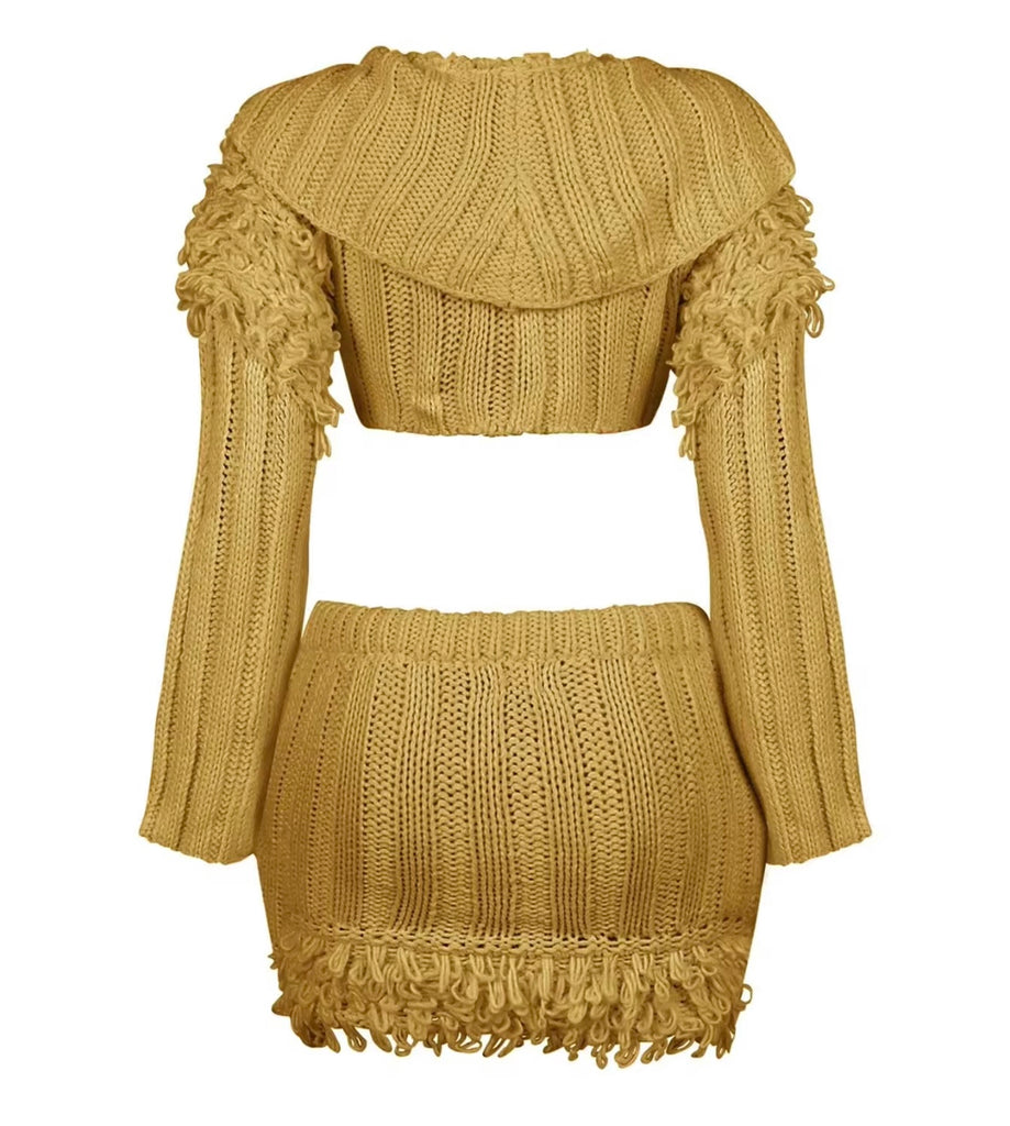 Women Khaki Fashion Trench Jacket Two Piece Ruffled Skirt Set