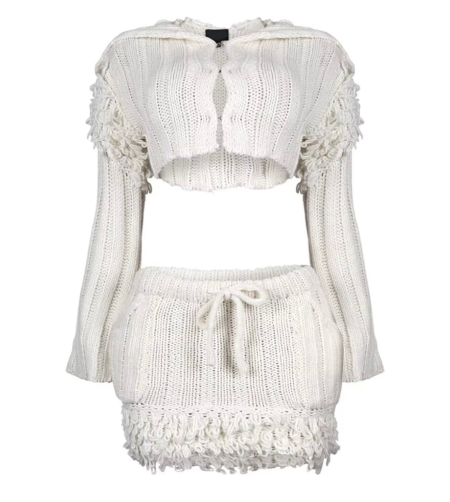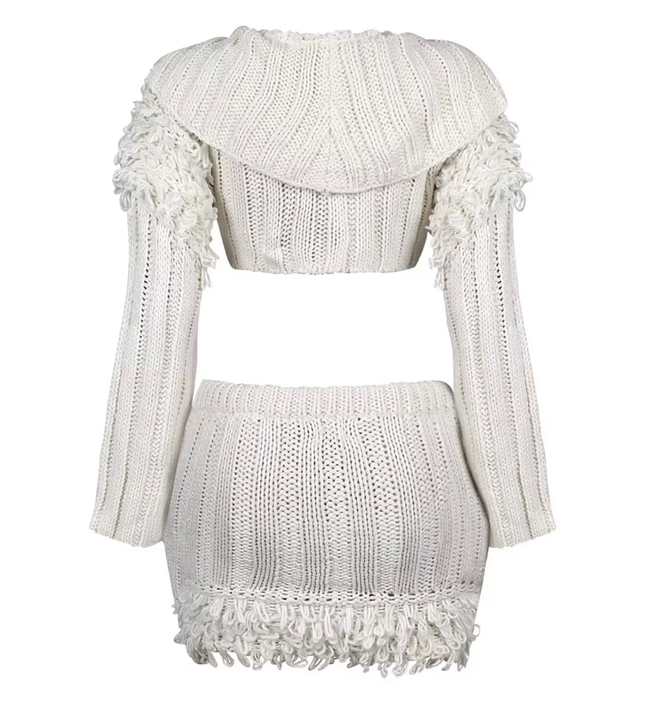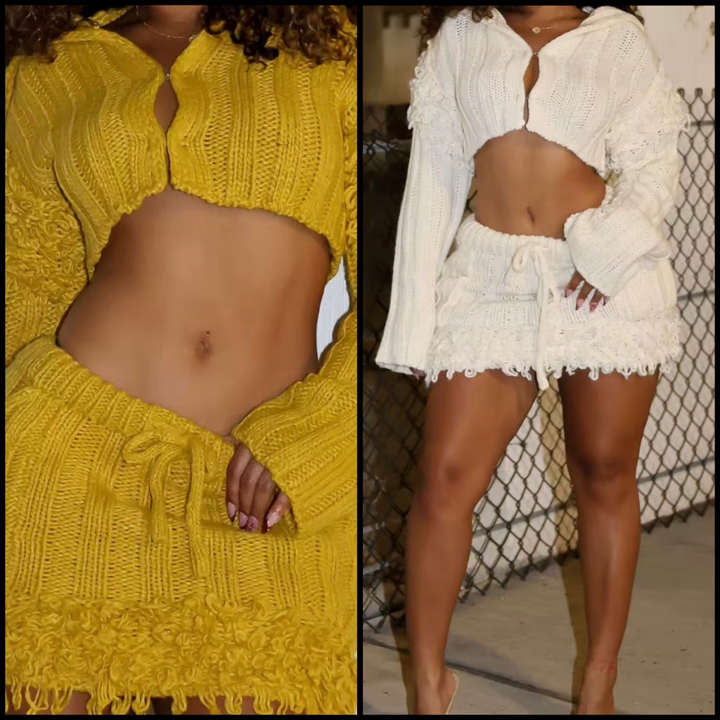 Women Ruffled Bow Tie Full Sleeve Two Piece Bling Skirt Set