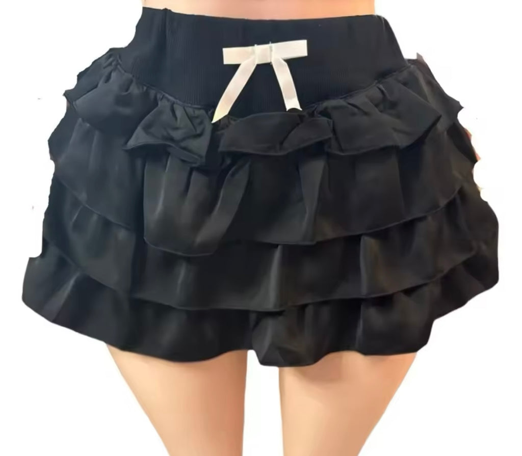 Women Sexy Black Lace Strapless Ribbon Two Piece Skirt Set