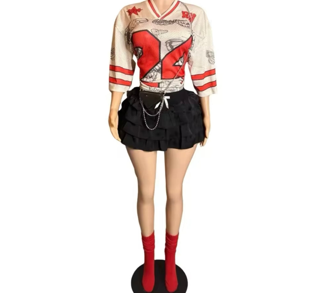 Women Sexy Striped Full Sleeve Bodysuit Two Piece Pleated Skirt Set