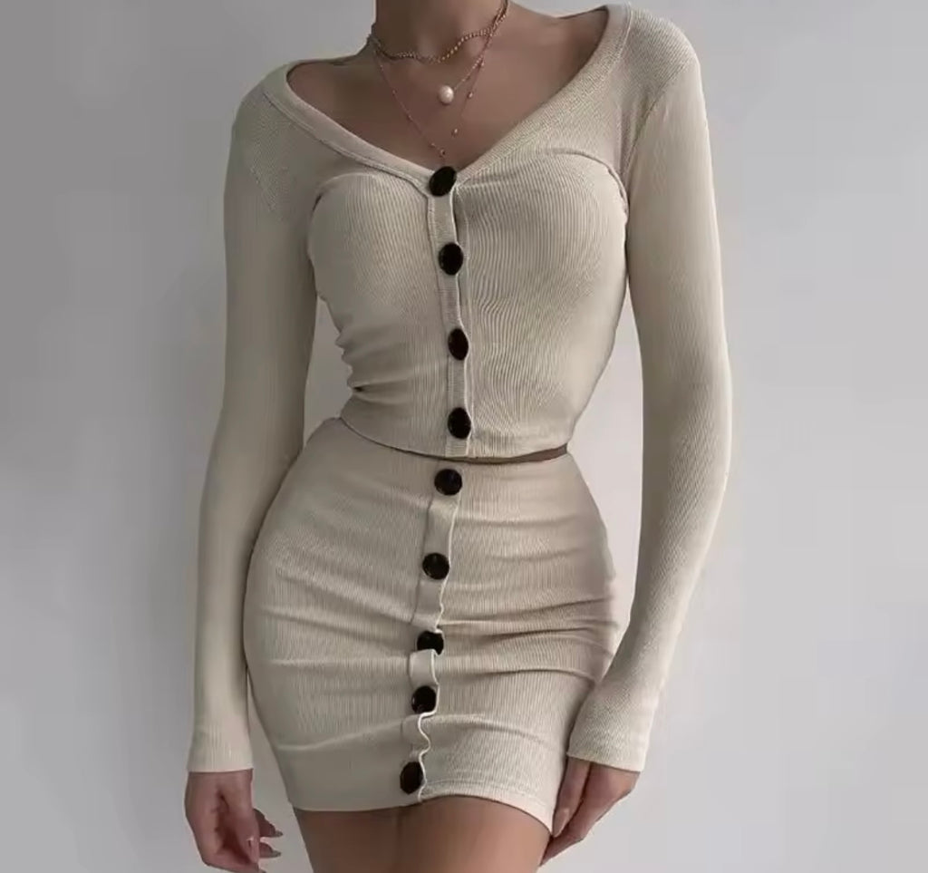 Women Ruffled Bow Tie Full Sleeve Two Piece Bling Skirt Set