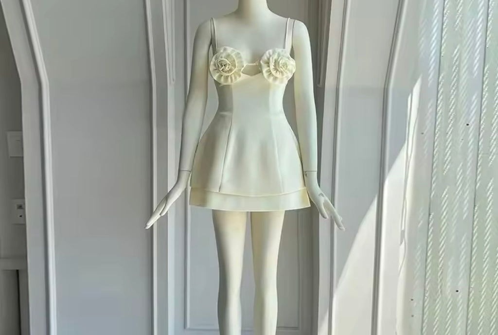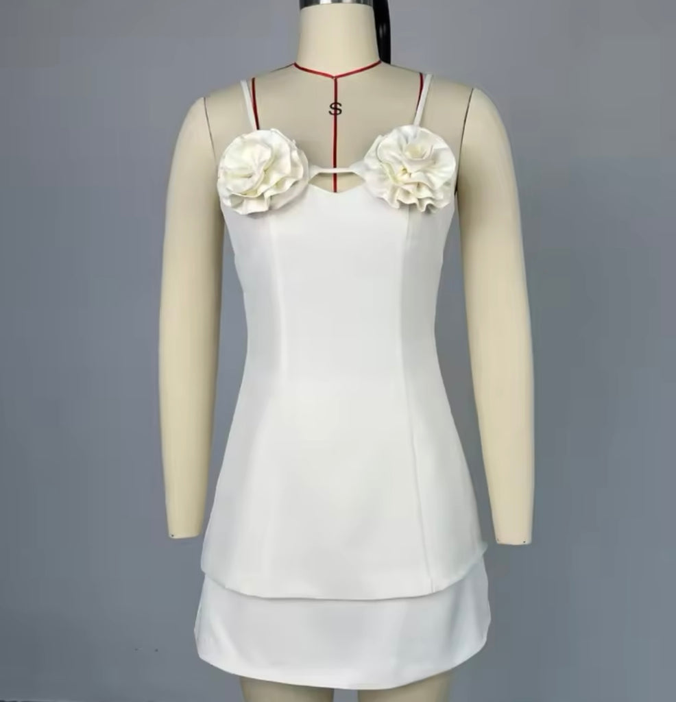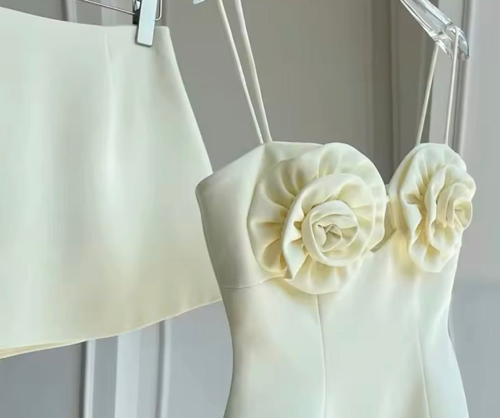 Women Sexy Sleeveless 3D Floral Patchwork Two Piece Skirt Set