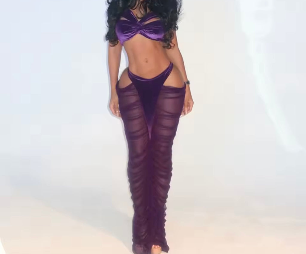 Women Sexy Black Lace Strapless Ribbon Two Piece Skirt Set