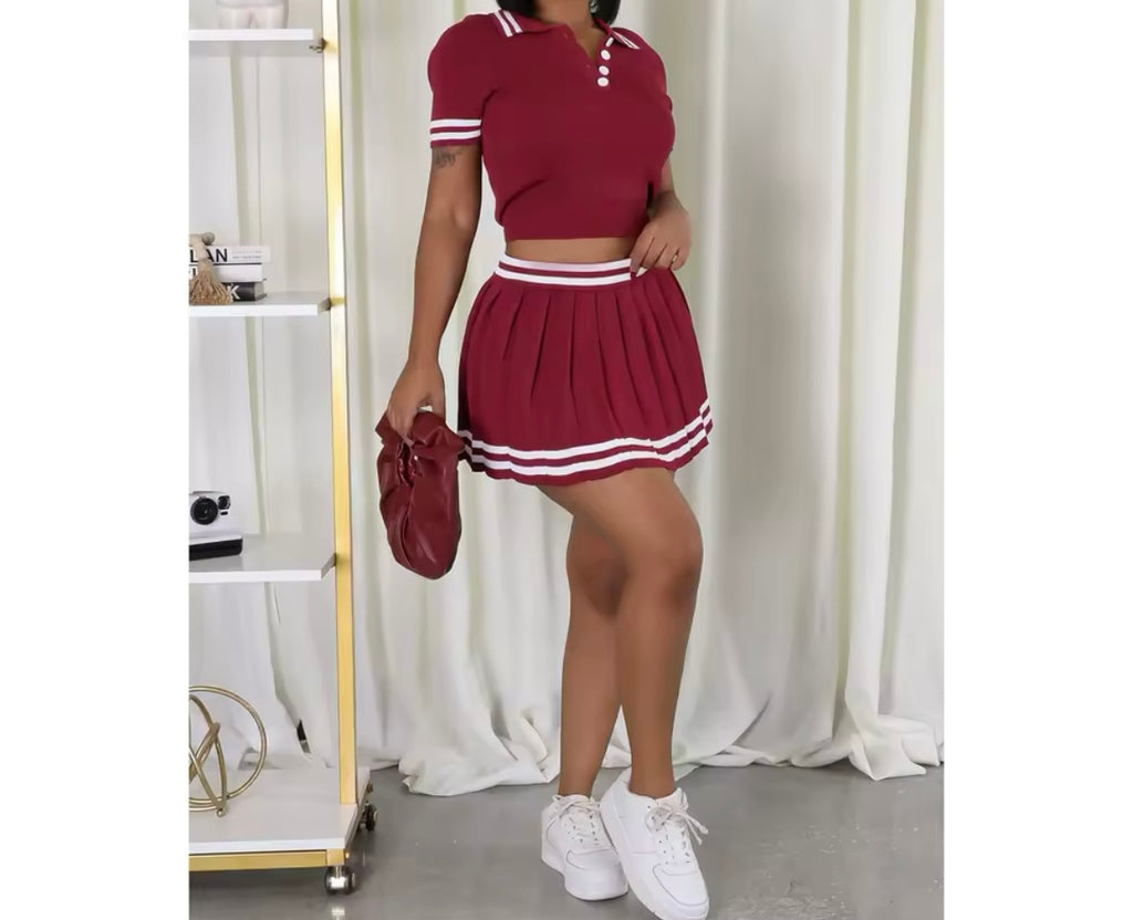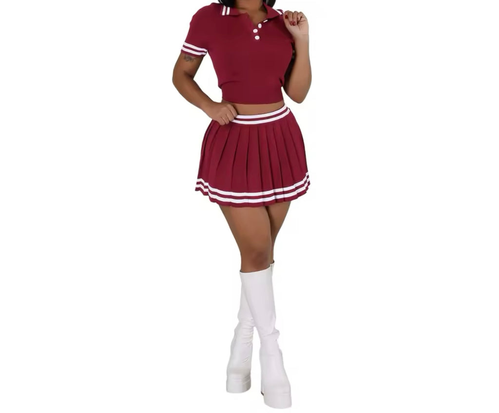 Women Ruffled Bow Tie Full Sleeve Two Piece Bling Skirt Set