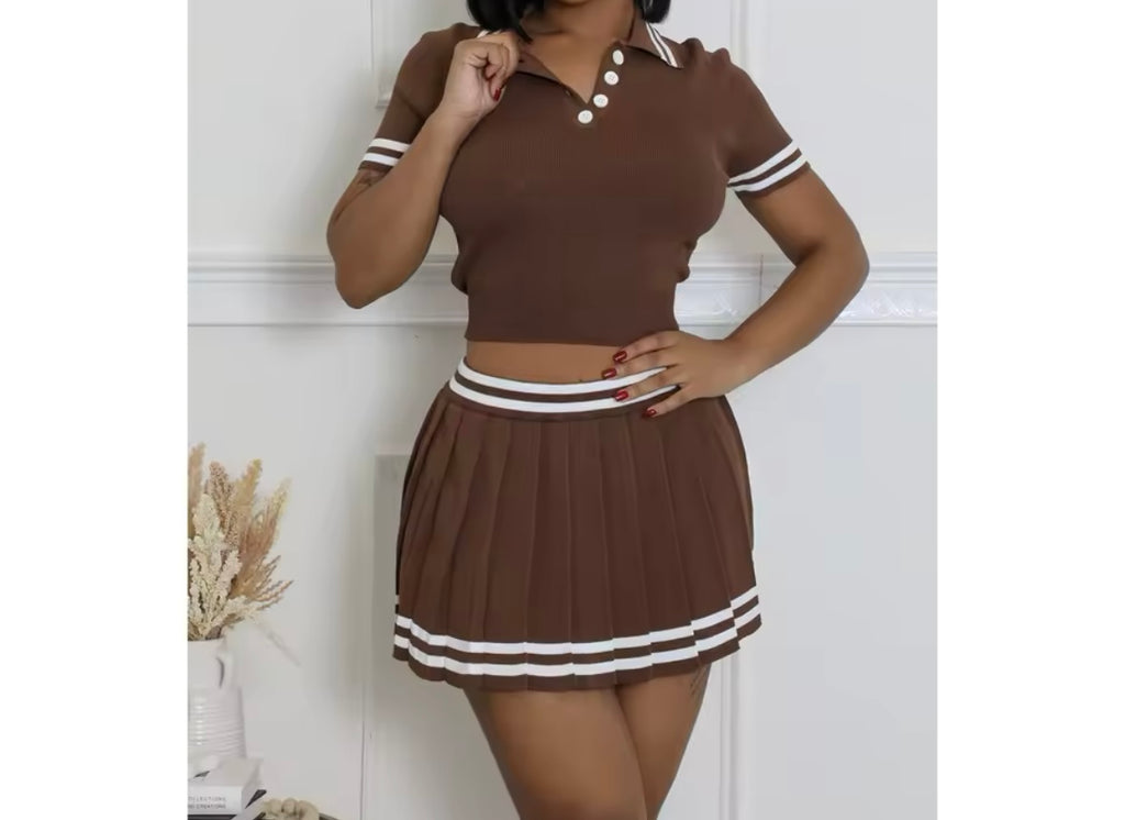 Women Floral Double-Breasted Trench Two Piece Pleated Skirt Set
