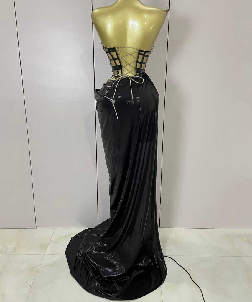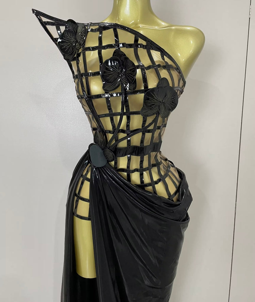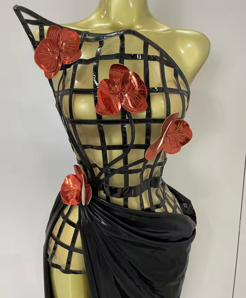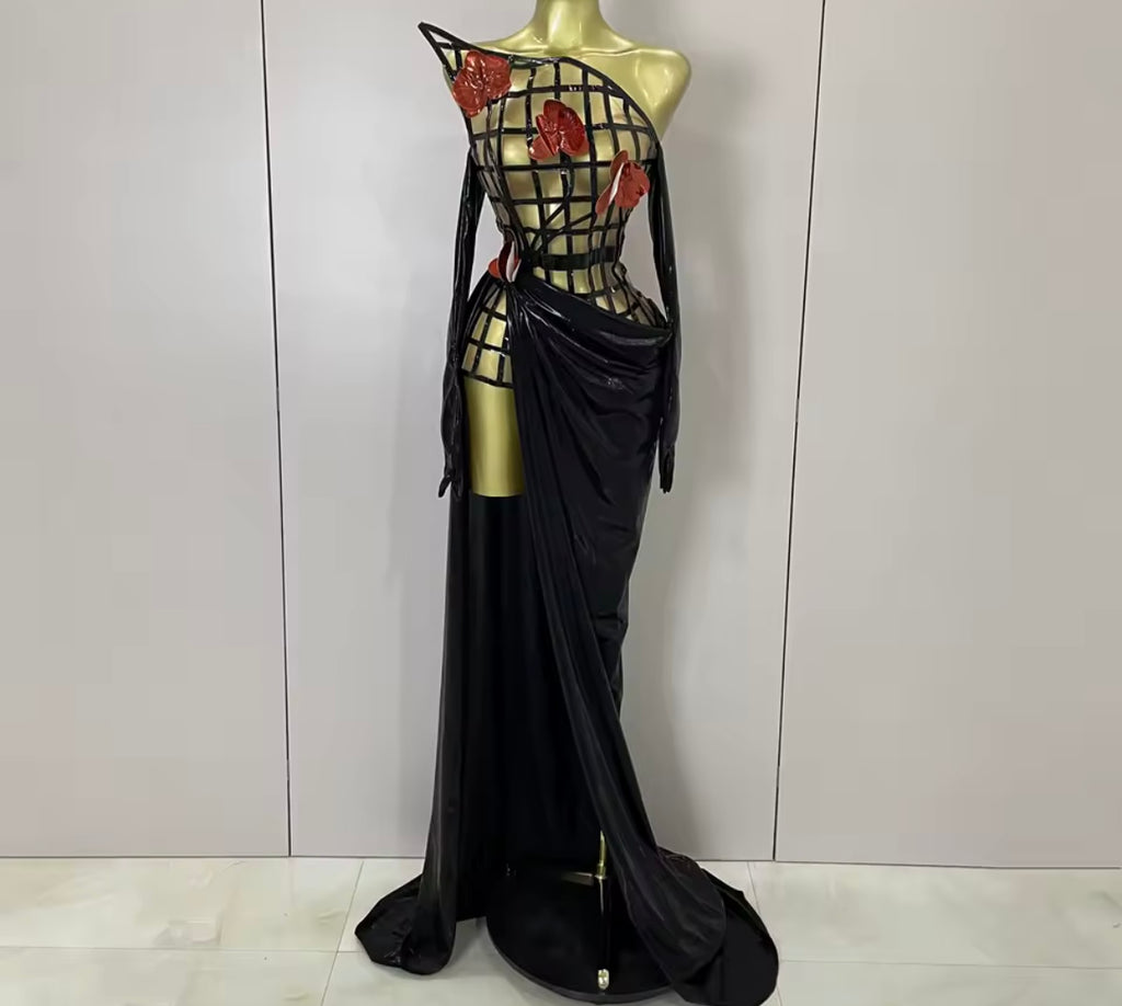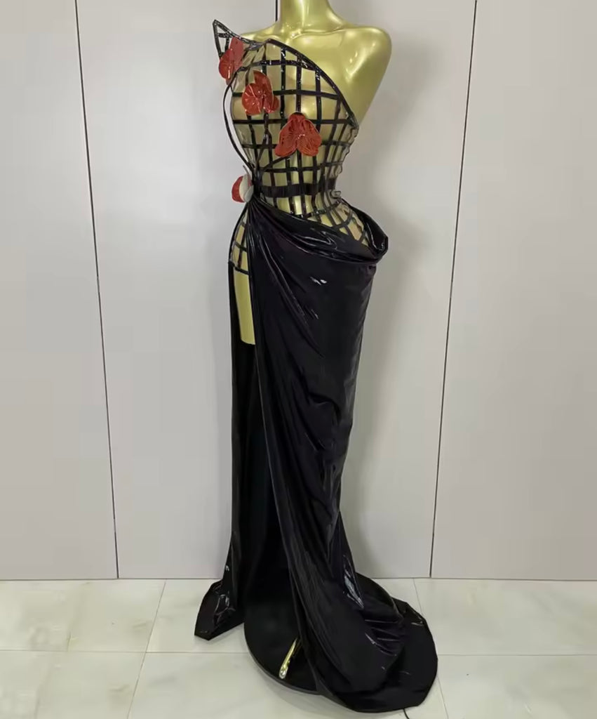 Women Sexy Strapless Glove 3D Floral Two Piece Maxi Skirt Set