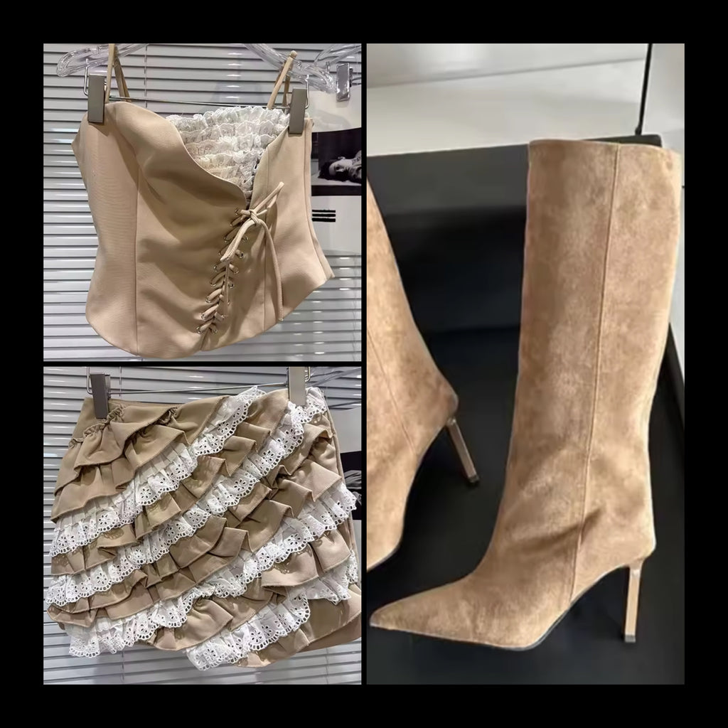 Women Brown Ruffled Sexy Three Piece Skirt Set