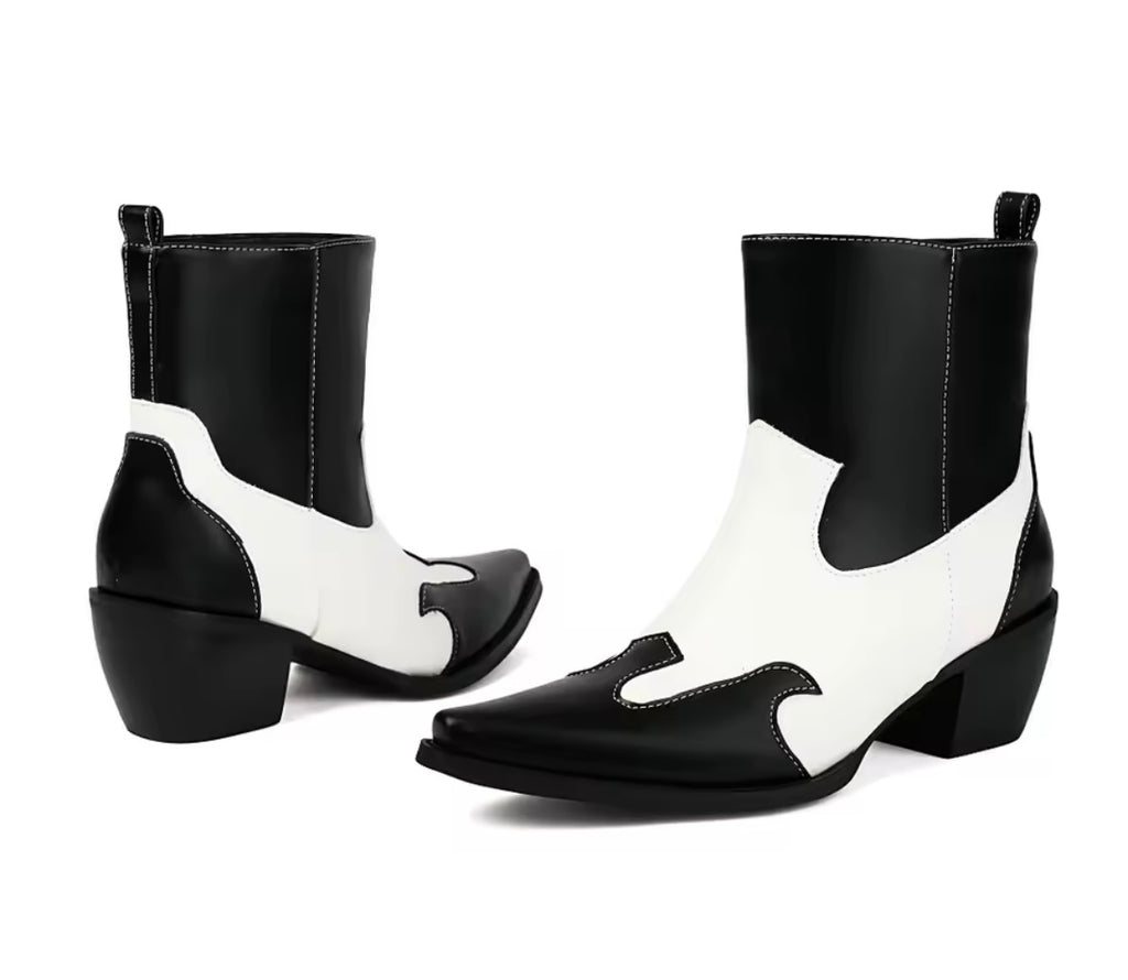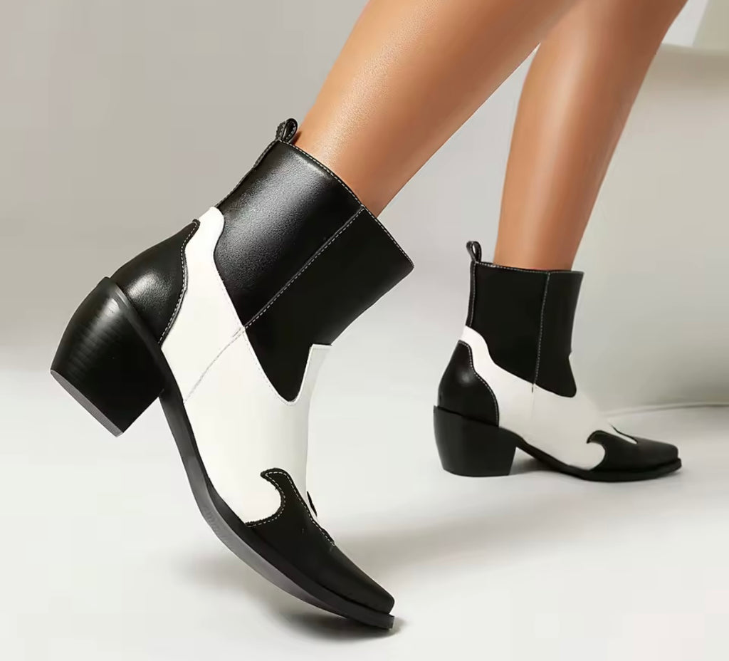 Women Color Patchwork Fashion Faux Leather Western Ankle Boots