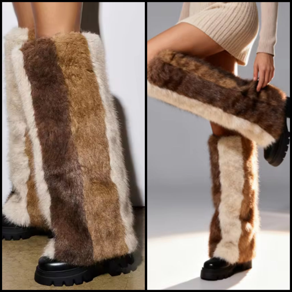 Women Fashion Rivet Fringe Buckle Denim Knee High Boots