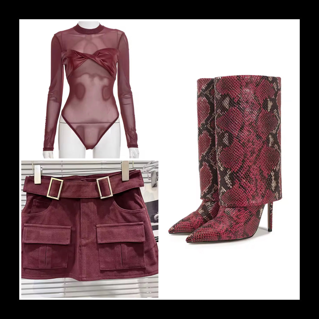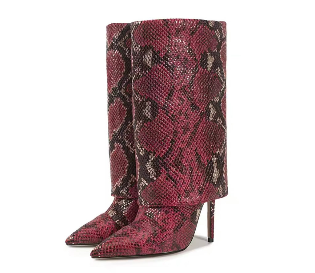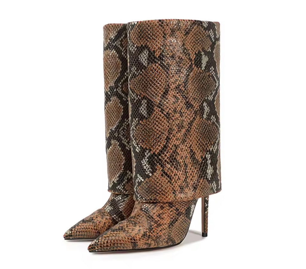 Women Fashion Animal Print Pointed Toe High Heel Boots