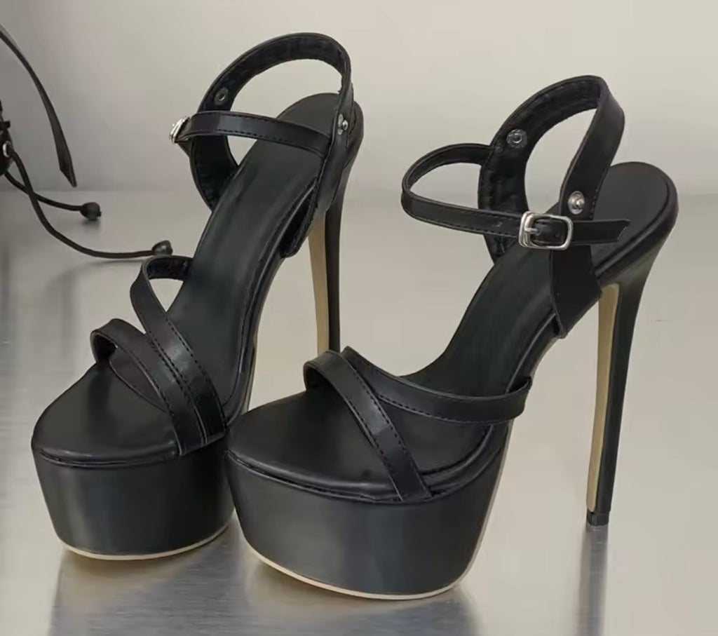 Women Patent Leather Platform High Heel Ankle Strap Sandals