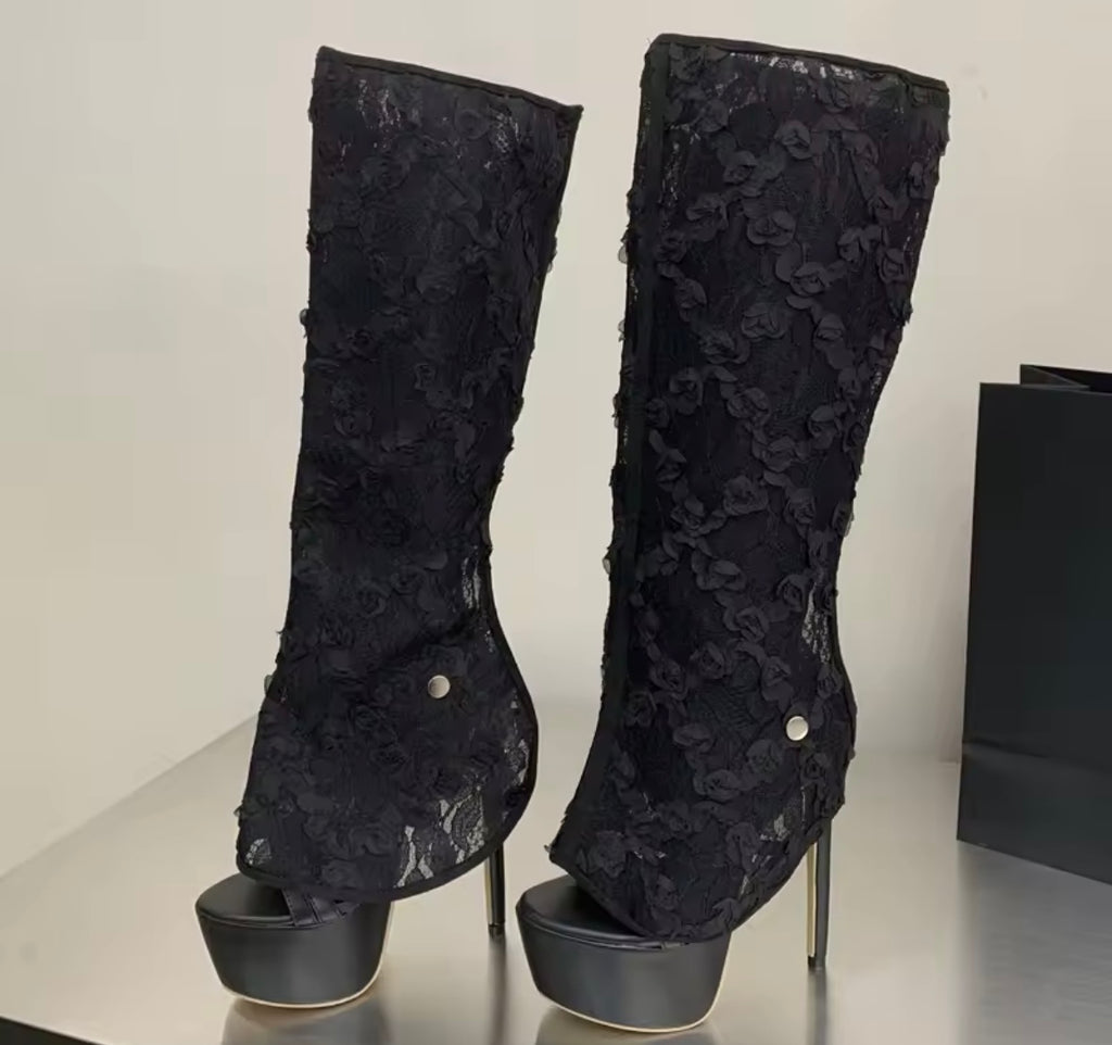 Women Pendant Beaded Velour Platform High Heel Sandals