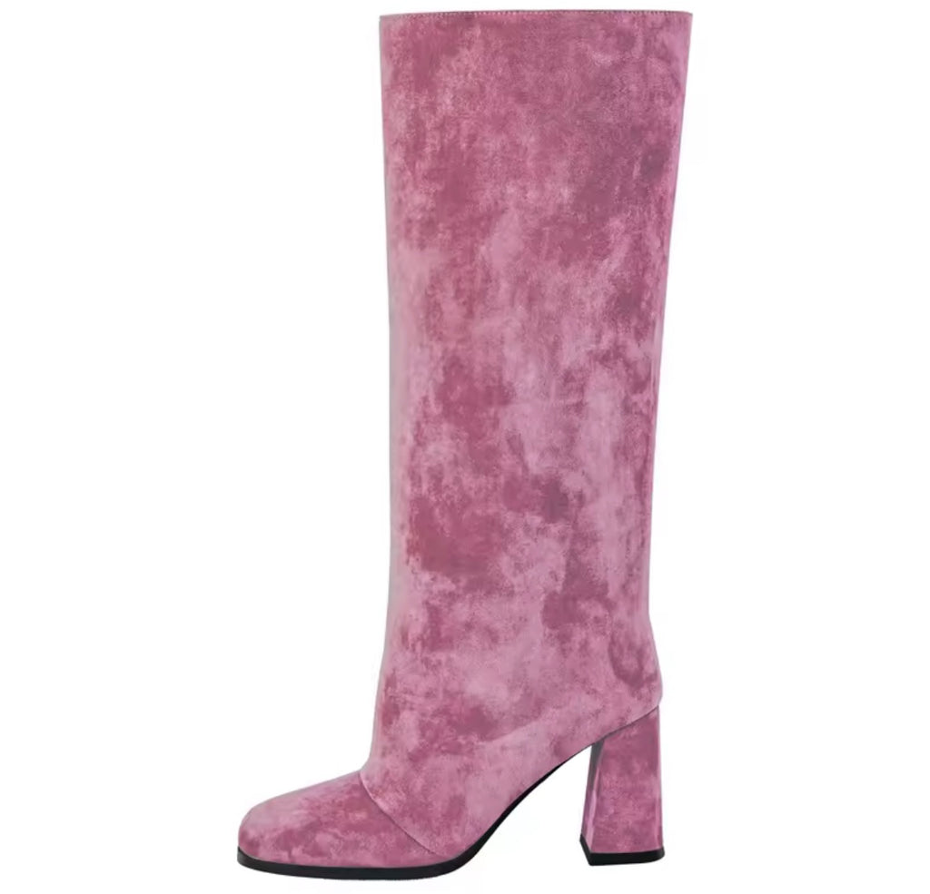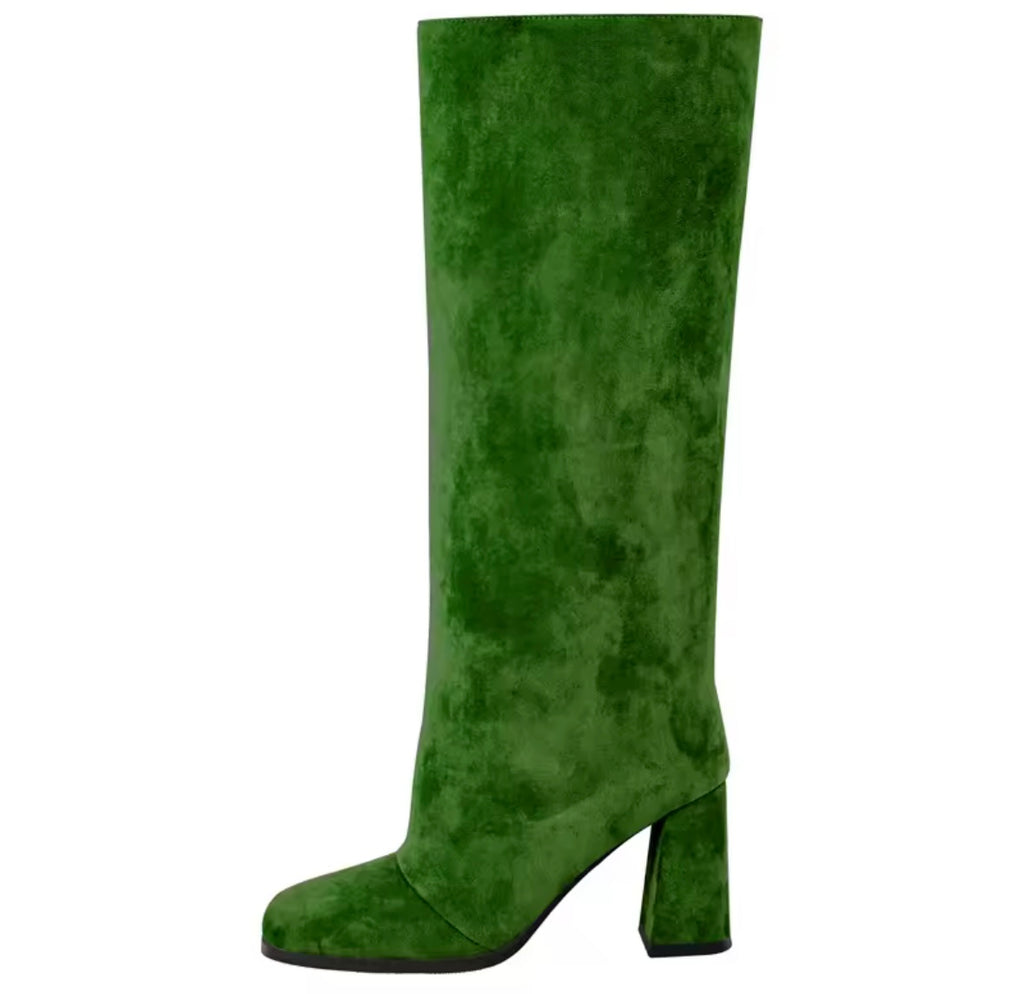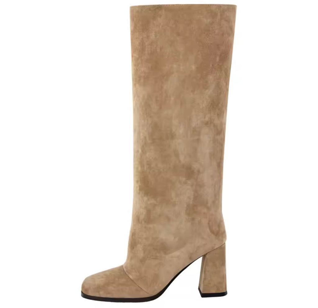 Women Fashion Metallic Zip Up Platform Knee High Boots