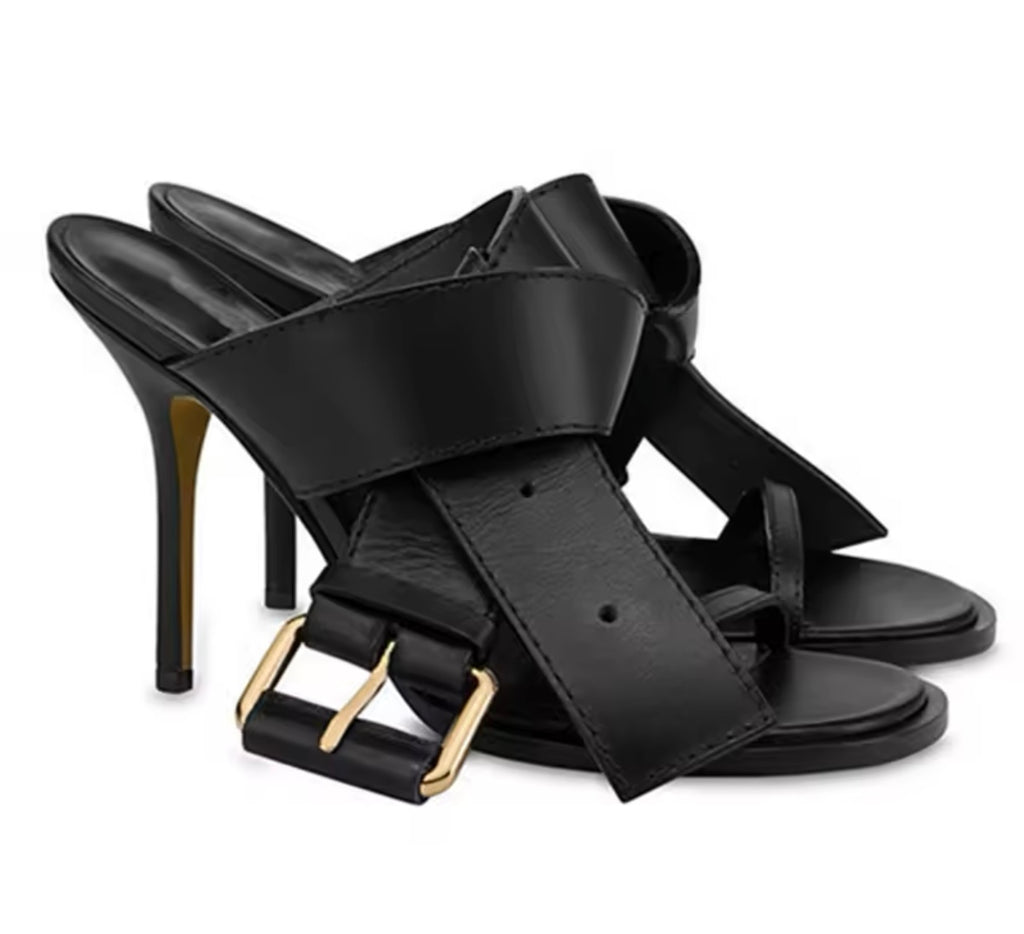 Women Fashion Open Toe Buckled Slide On High Heel Sandals