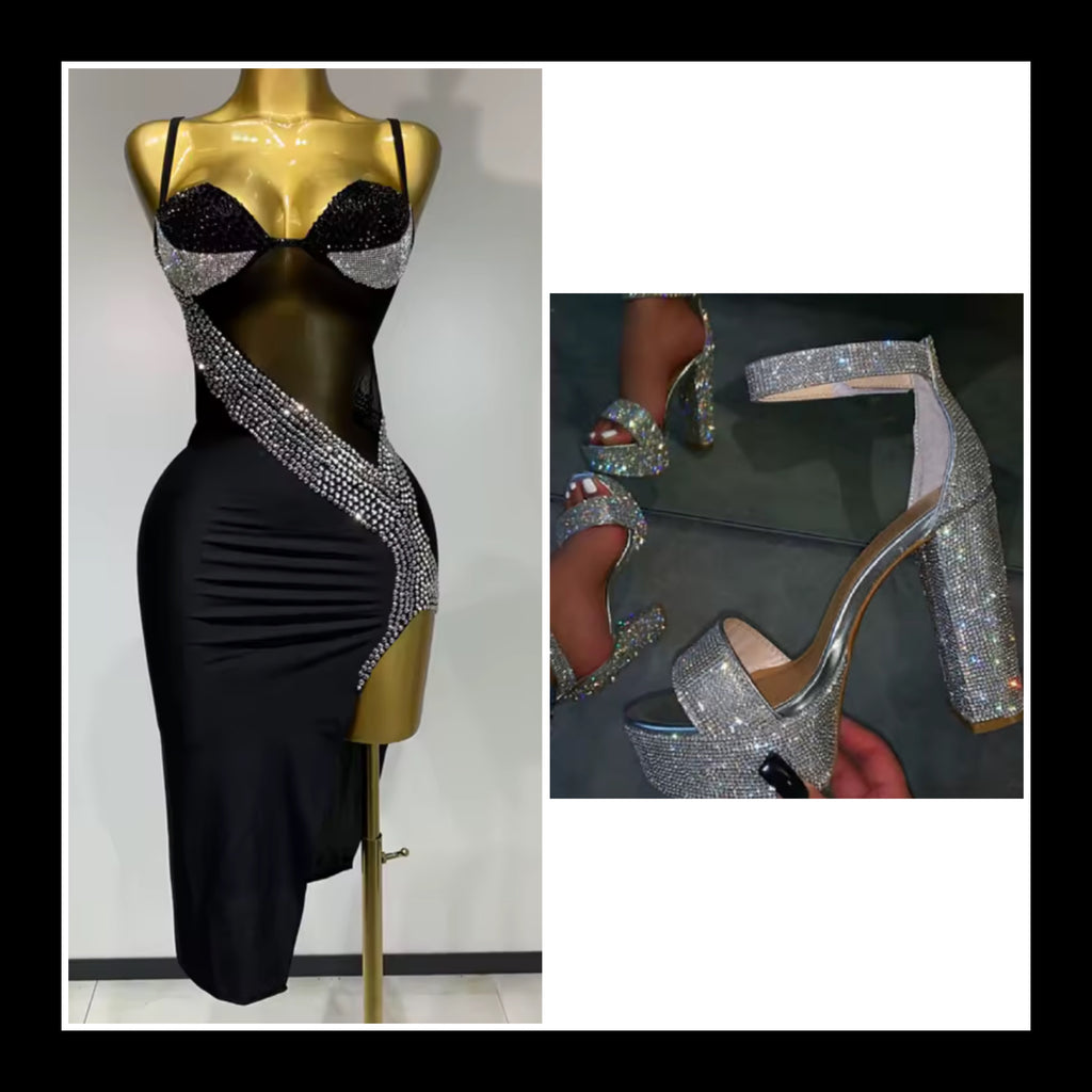 Women Pendant Beaded Velour Platform High Heel Sandals