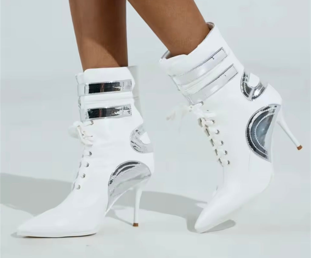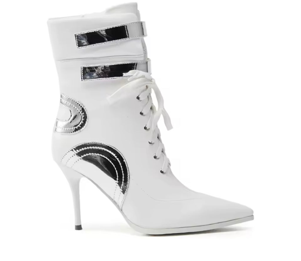 Women Fashion Pointed Toe Zipper Ruche Ankle Boots