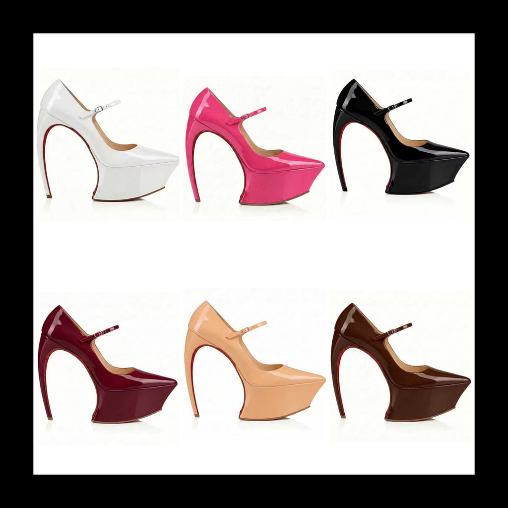 Women Patent Leather Platform High Heel Ankle Strap Sandals