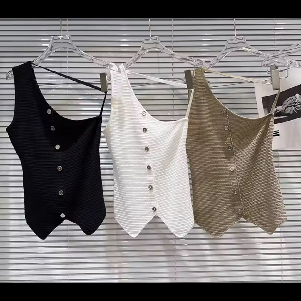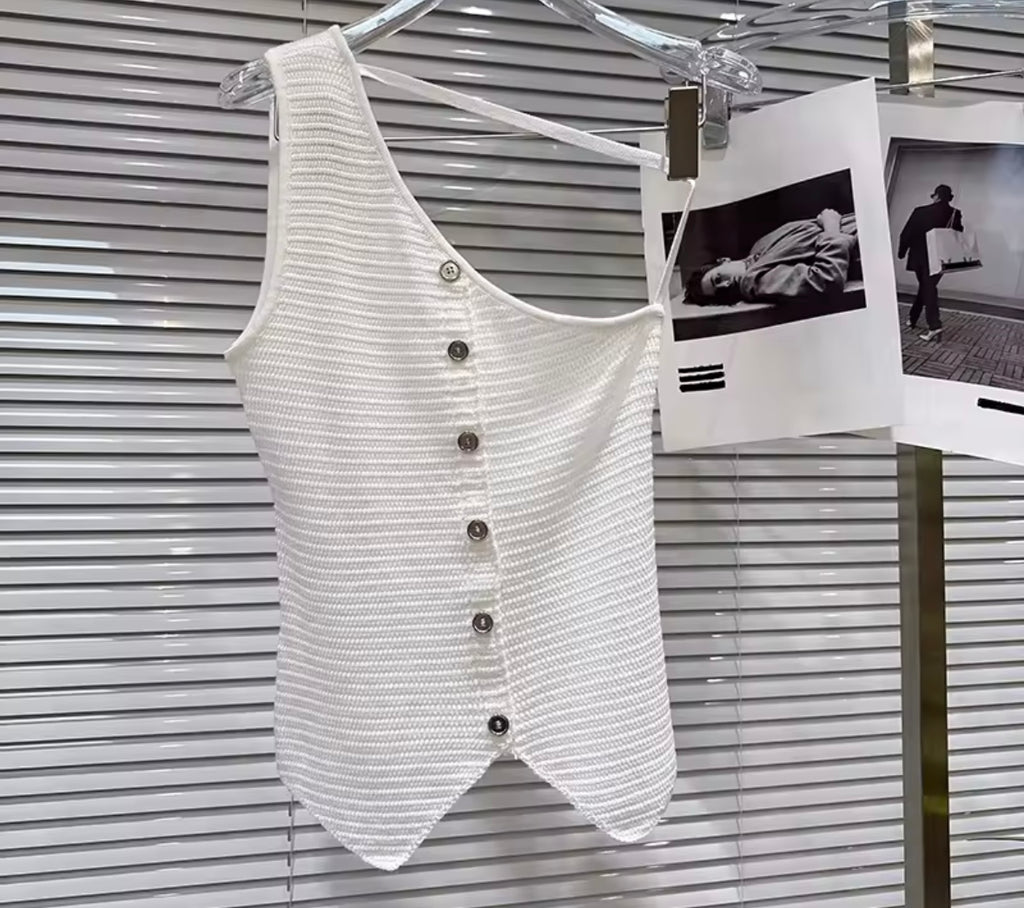 Women Ruffled Bow Button Up Sleeveless Top