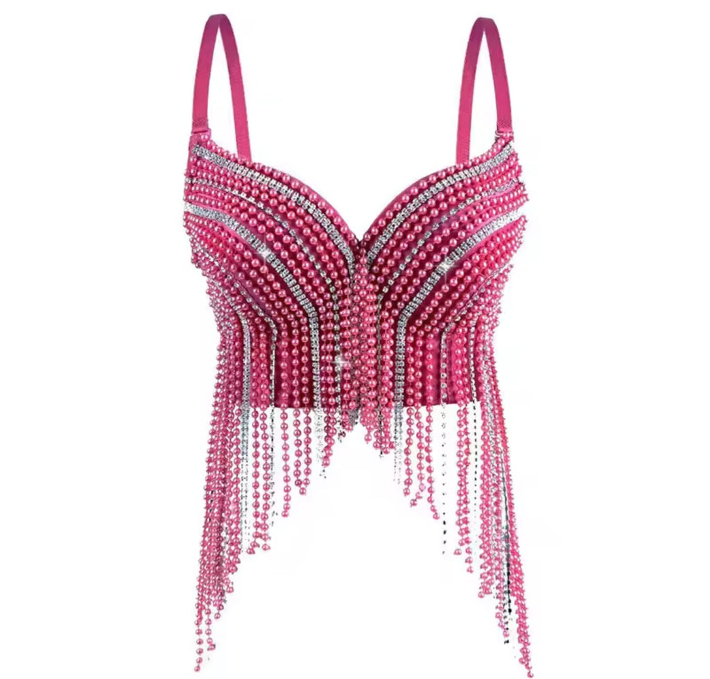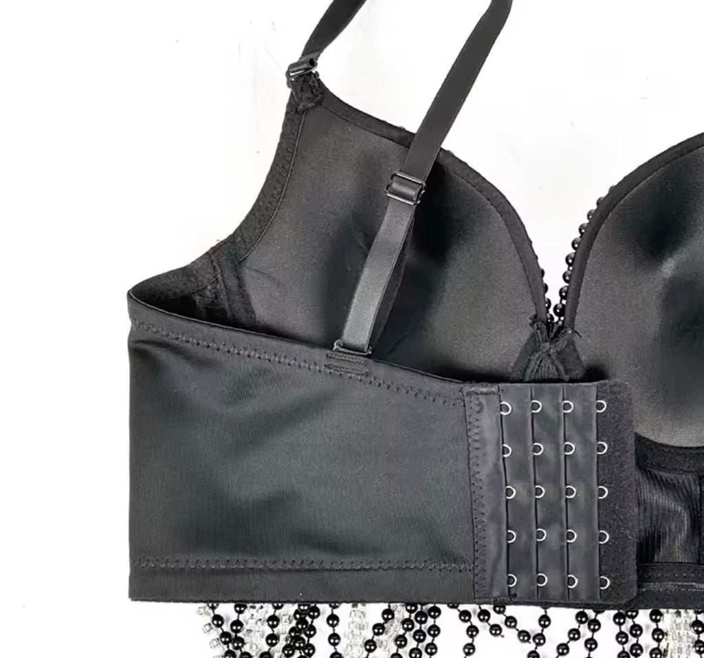Women Rhinestone Tassel Black Fashion Tank Crop Top