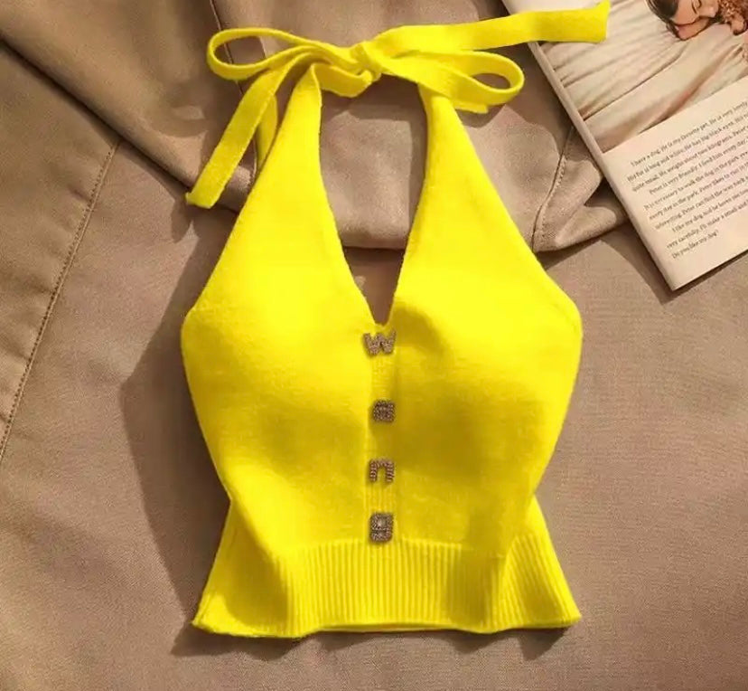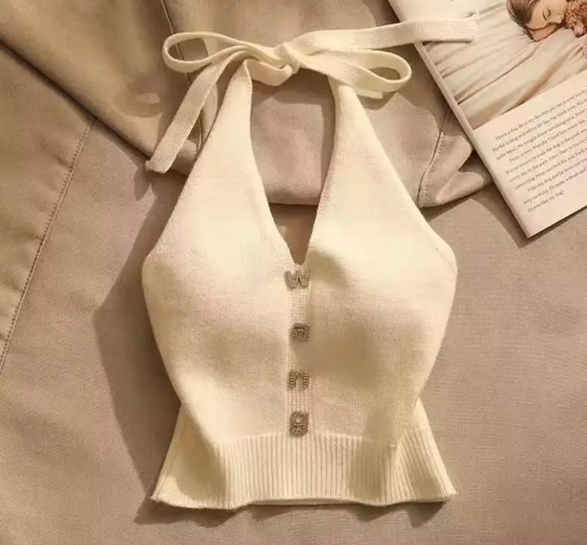 Women Rhinestone Tassel Black Fashion Tank Crop Top