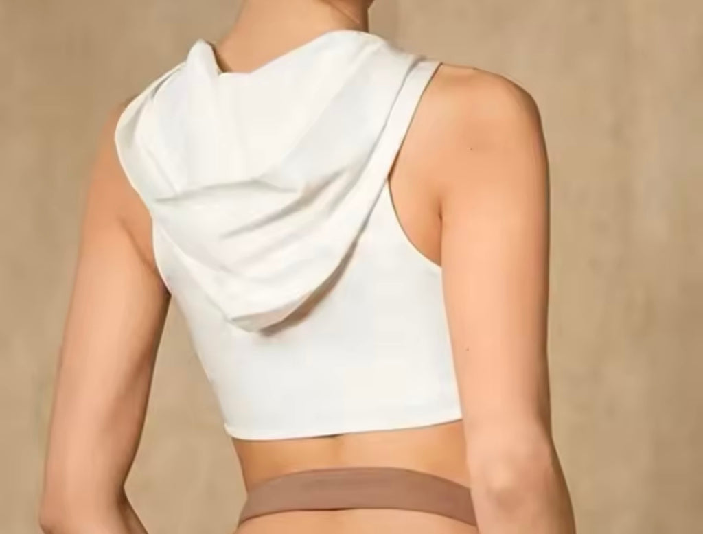 Women Fashion Sleeveless Hooded Metal Ring Crop Top