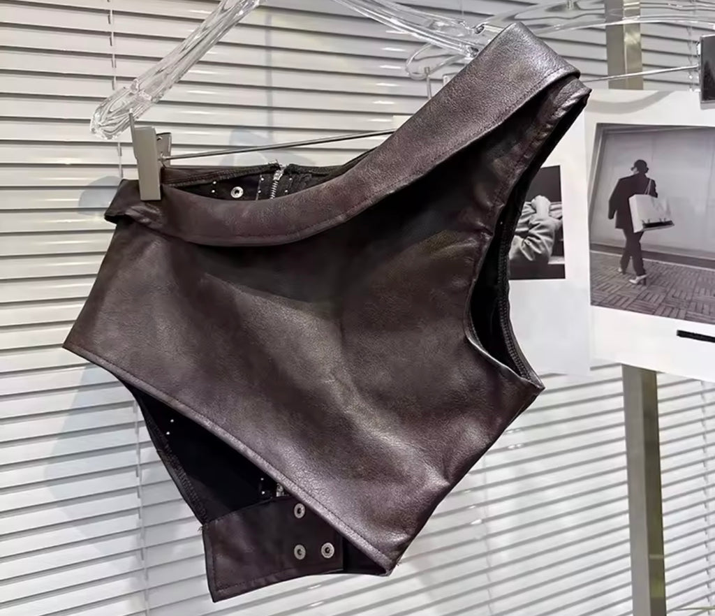 Women Fashion Sexy Black/White One Shoulder Crop Top