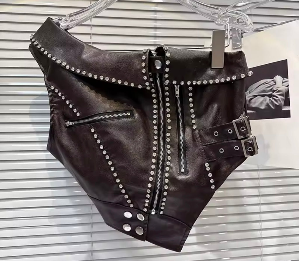 Women Rhinestone Tassel Black Fashion Tank Crop Top