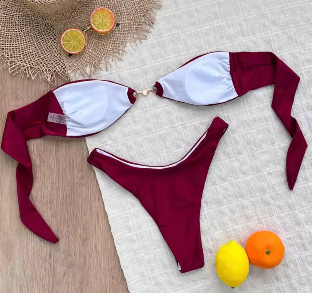 Women Sexy Fashion Color-Block Backless Swimsuit