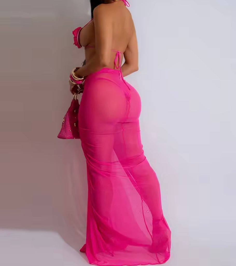 Women Sexy Bling Three Piece Bikini Cover Up Set