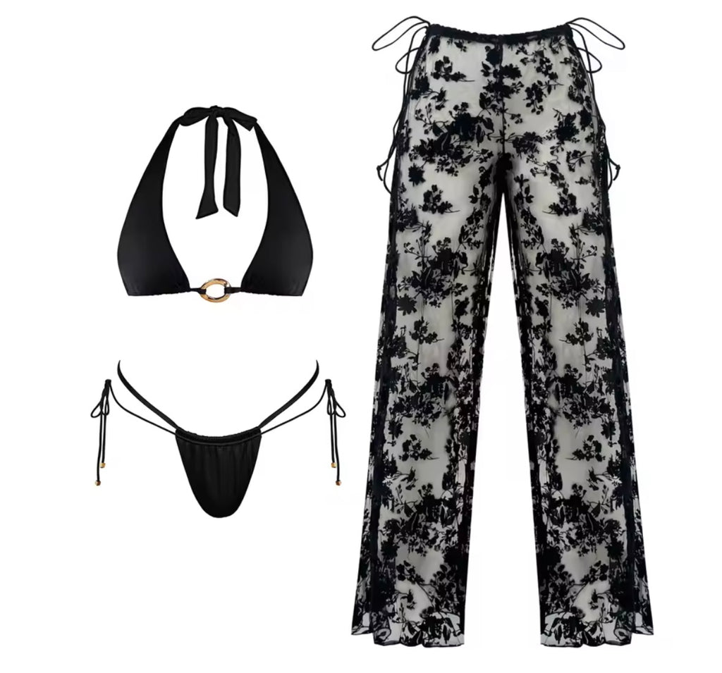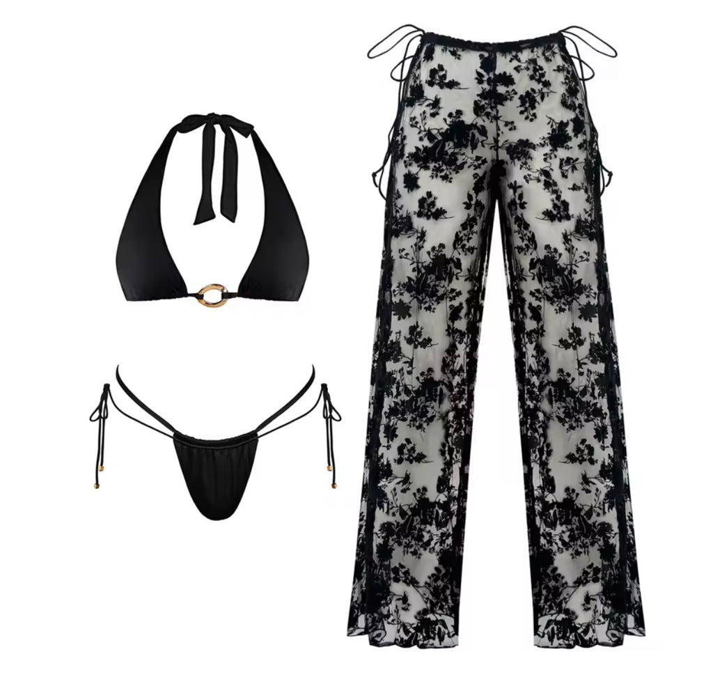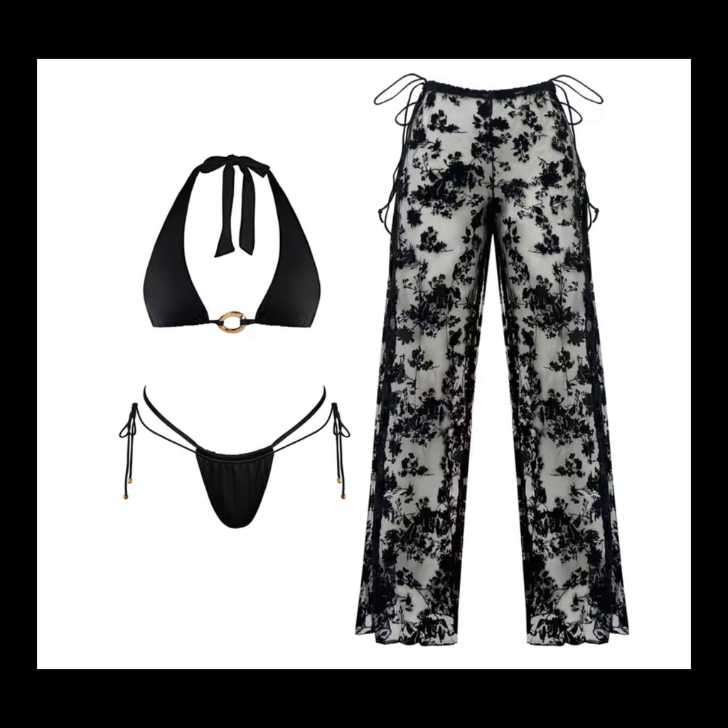 Women Sexy Bling Three Piece Bikini Cover Up Set