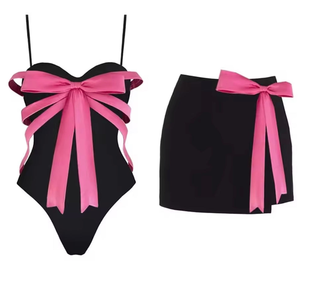 Women Sexy Color Patchwork Bow Bikini/Swimsuit Cover Up Set