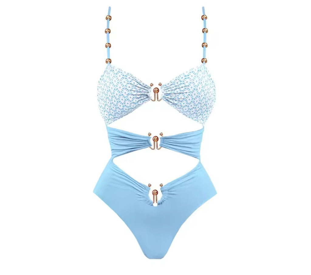 Women Sexy Fashion Color-Block Backless Swimsuit