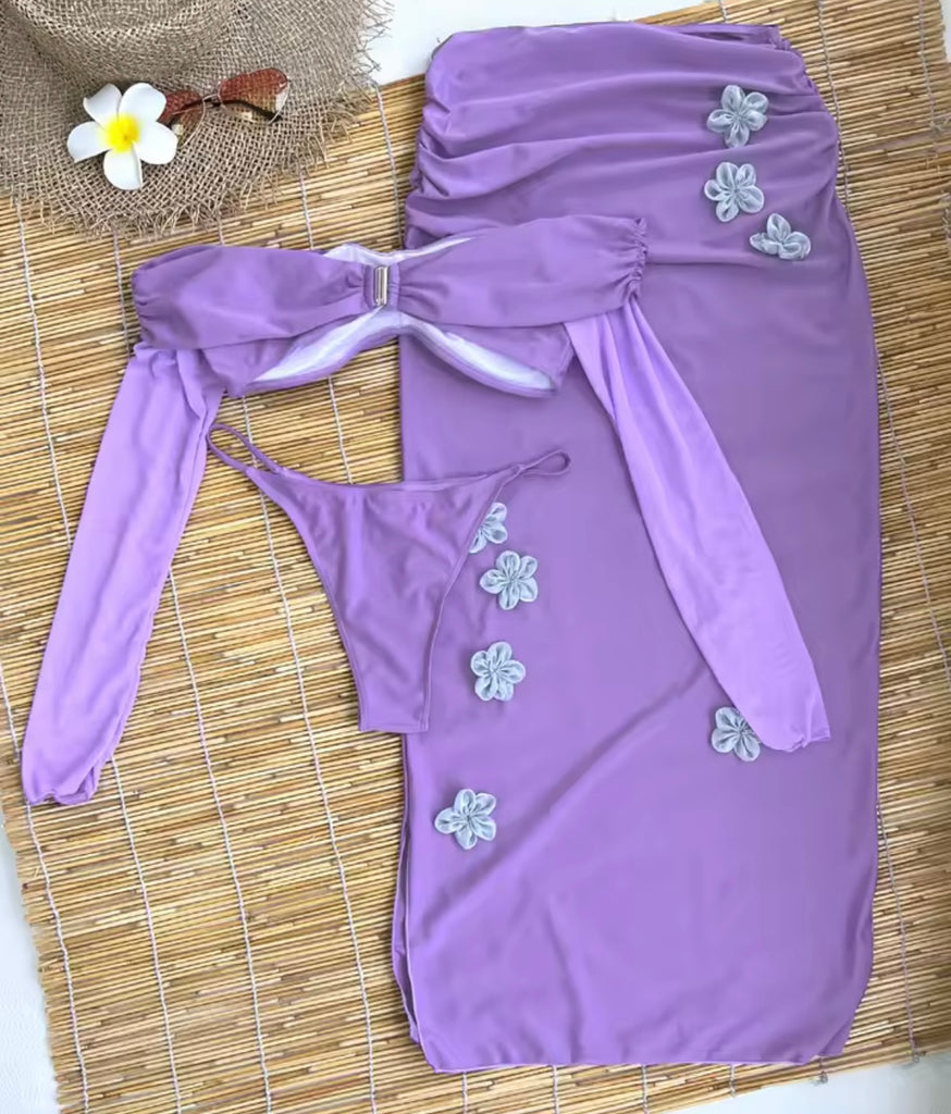 Women Sexy Bling Three Piece Bikini Cover Up Set