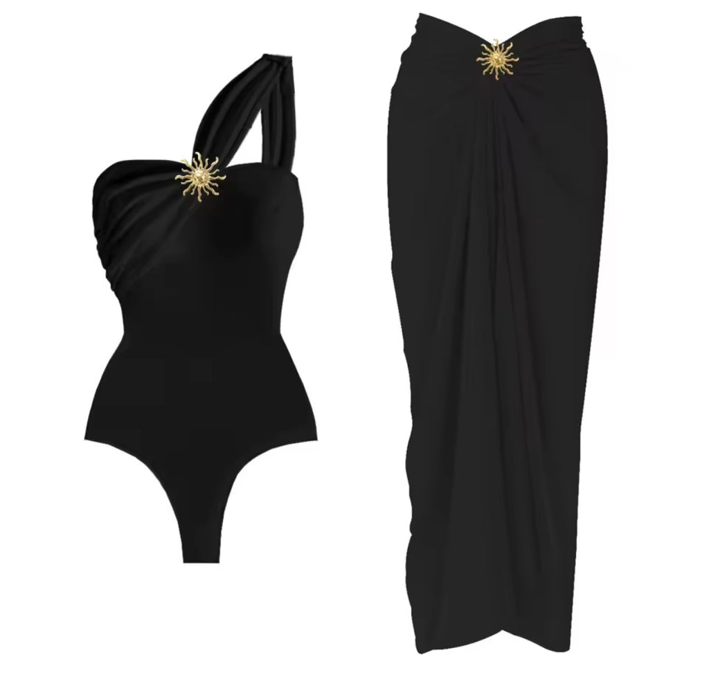Women Sexy One Shoulder Swimsuit Cover Up Set
